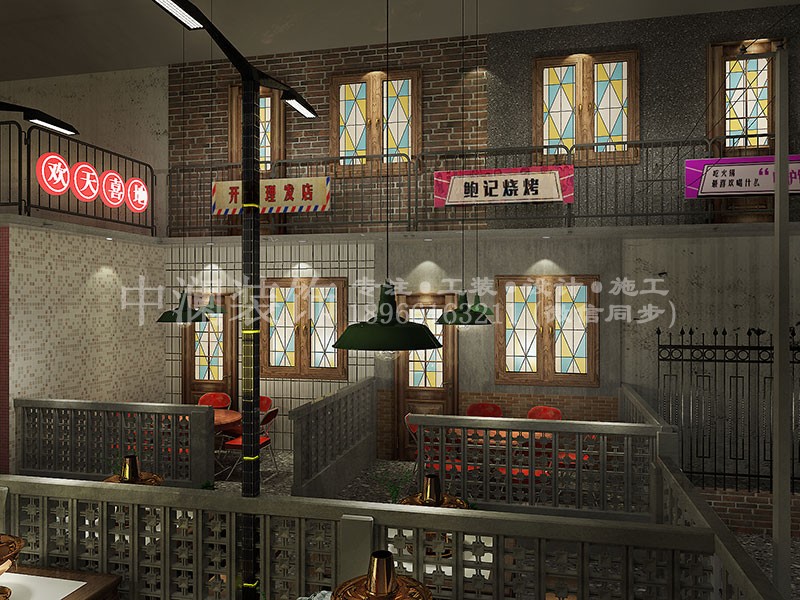 怀旧复古火锅涮肉餐饮店装修设计效果图